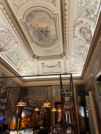 Palácio Chiado: If you want a good meal in a breathtaking setting, this is it. Housed in an 18th-century palace, every corner is stunning—but the golden lion at the bar steals the show. Known for creative cocktails (we tried the Bubblegum and the Palácio Chiado), the food is equally impressive. Highlights for us were the tuna tartare, rigatoni with shrimp tartare and caviar, glazed duck magret with honey and orange, and for dessert, the decadent Mousse “À Barão.”